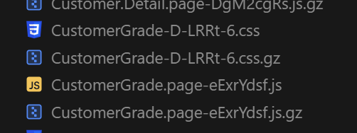 설정 후 빌드를 해보면 아래 이미지와 같이 청크파일과 .gz의 확장자를 가진 파일도 함께 생성된 것을 확인할 수 있습니다.