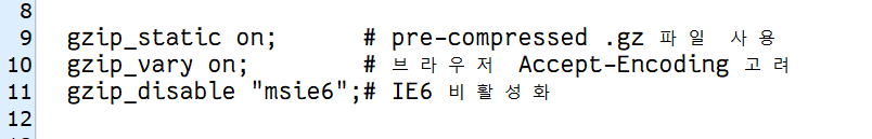 매우 간단한 설정만을 추가하여 gzip 설정을 할 수 있었습니다.