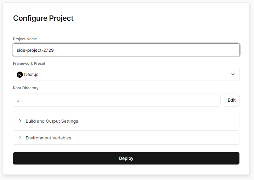 vercel에서 배포하는 것은 어렵지 않고 아주 쉬운편에 속한다.